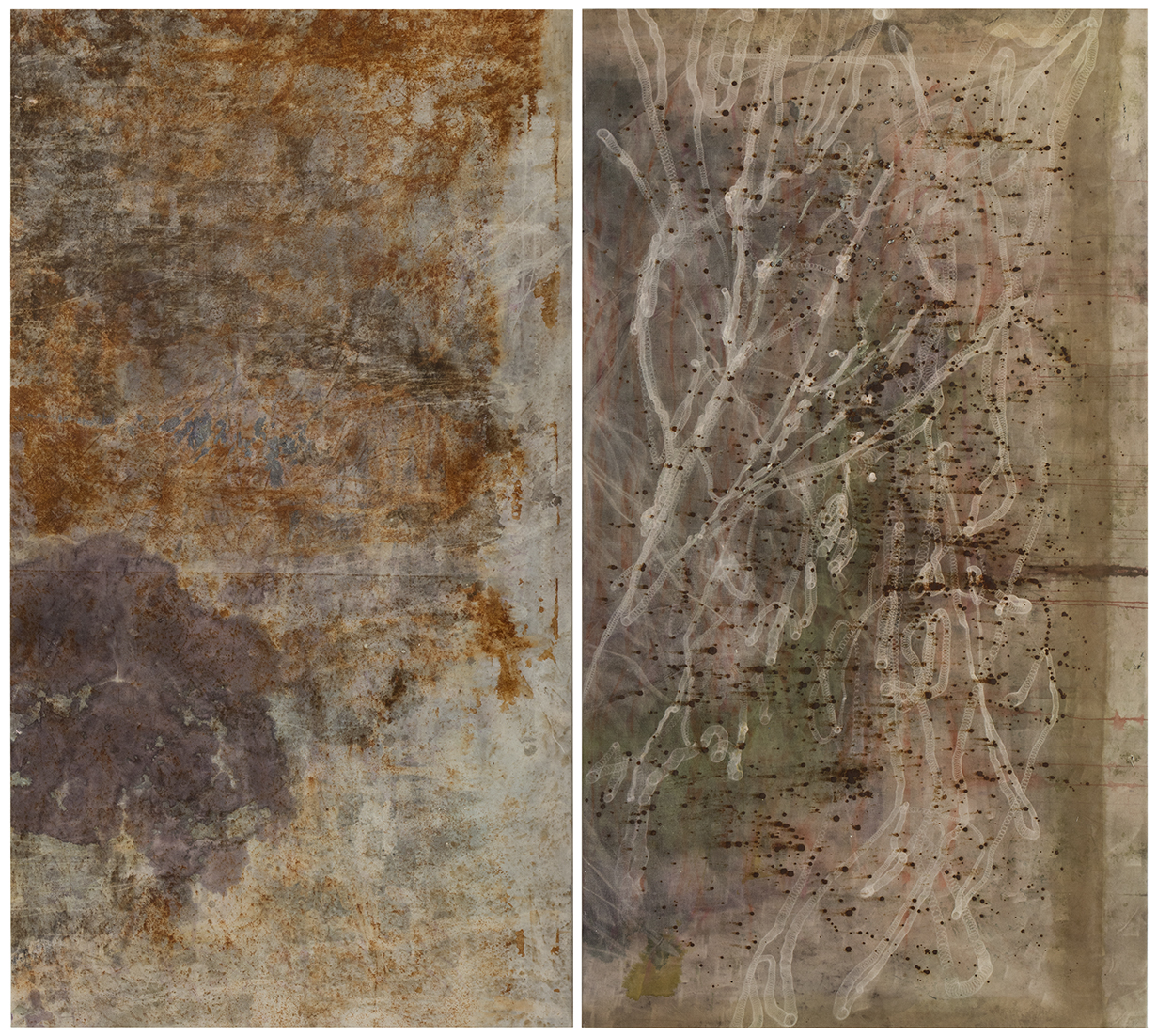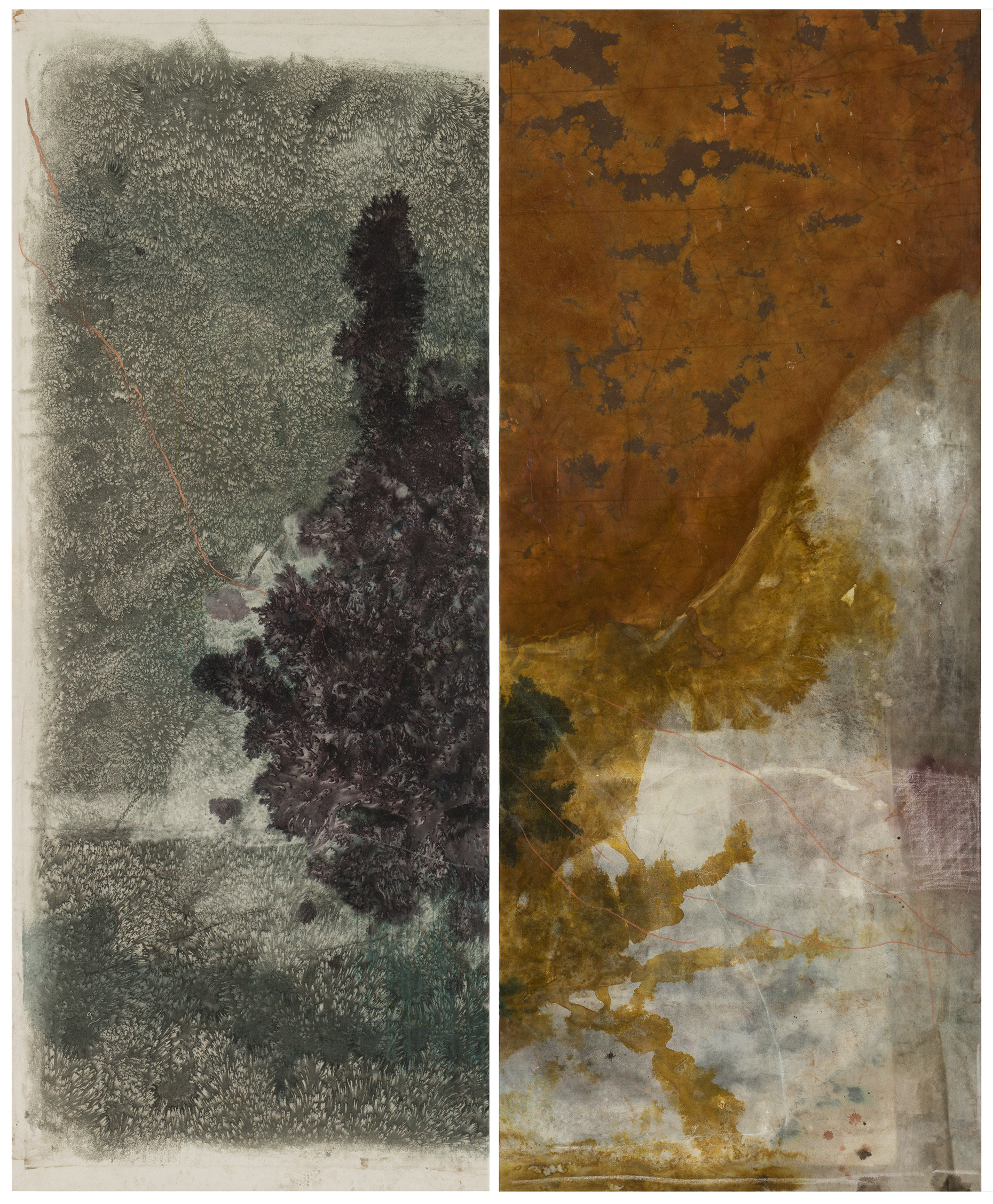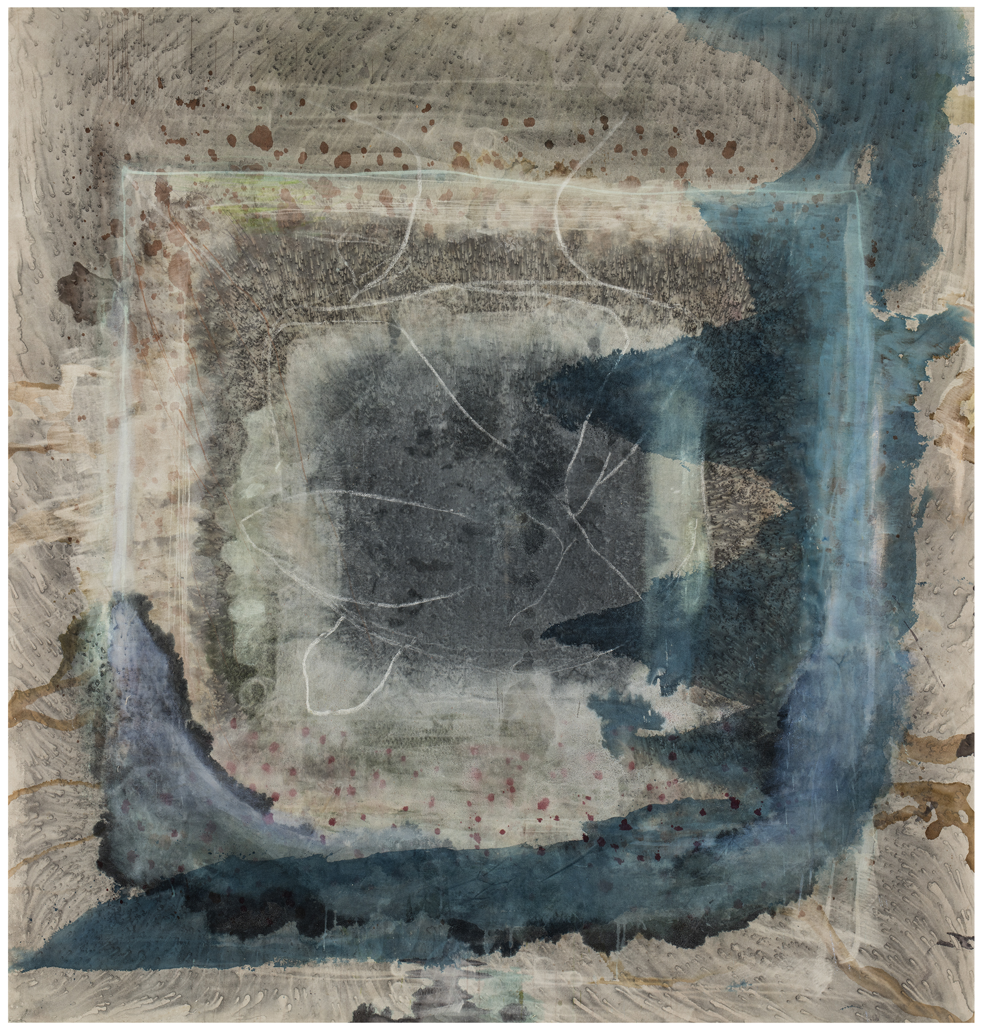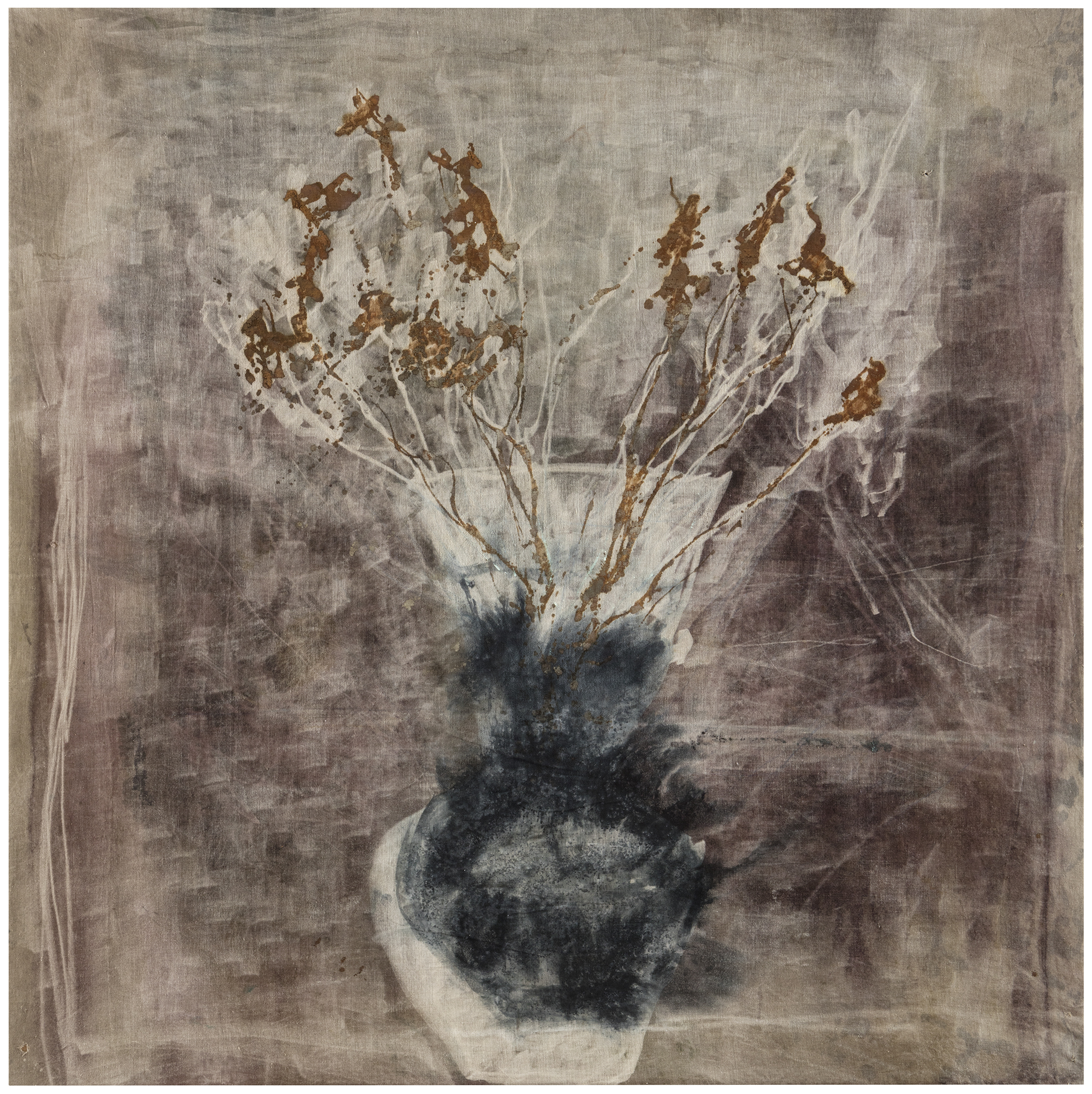 Miikka Vaskola's oeuvre consists of abstract landscapes and figurative imagery, that play between distance and proximity. Vaskola is best known for his large-scale paintings on unprimed canvas incorporating layers of ink, iron oxide, charcoal and chalk, that build up a very recogniseable aesthetic. He works persistently, investigating how different materials react with the canvas.