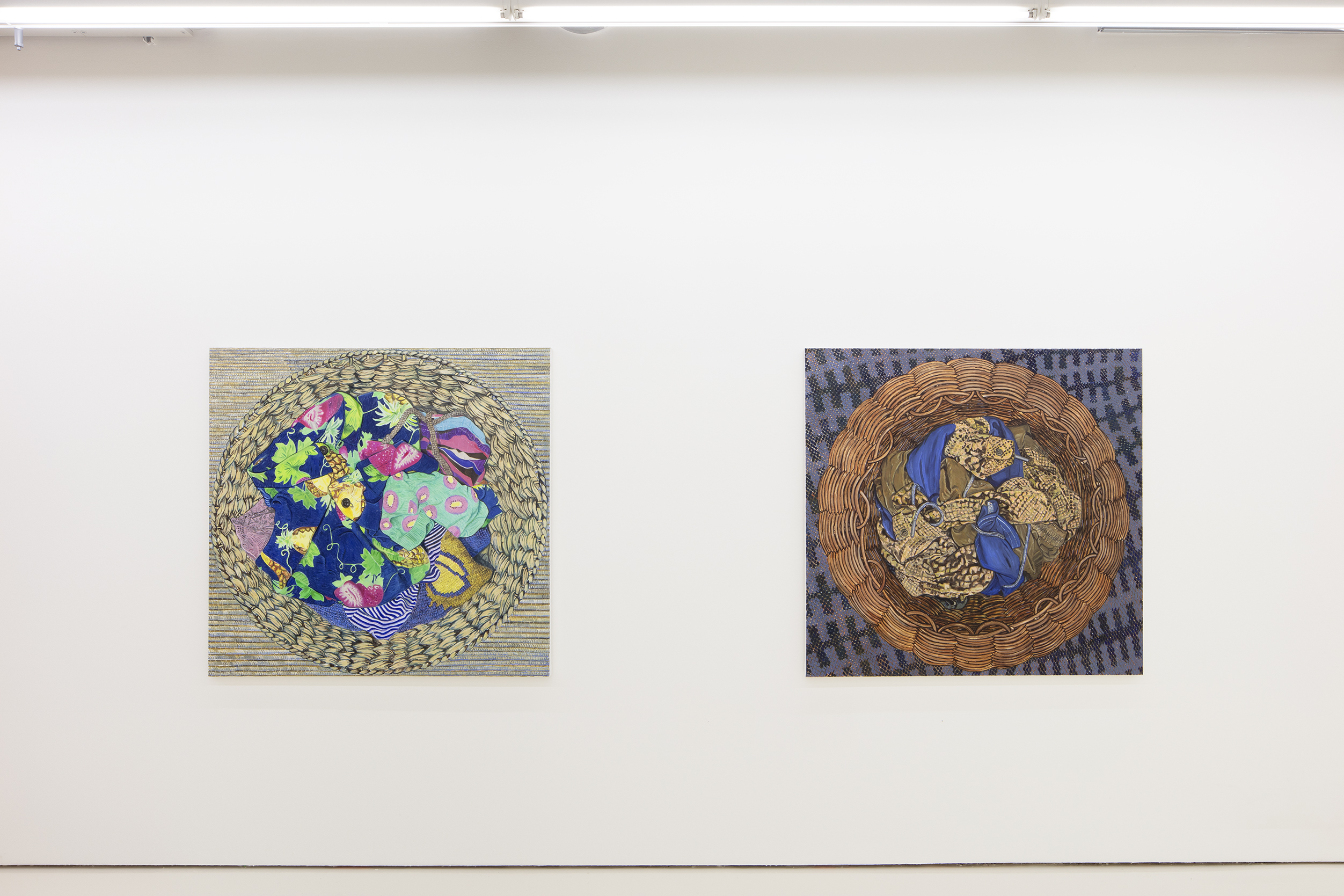 Nio’s latest exhibition consists of still life compositions capturing scenes of quotidian daily existence. Many are composed around a laundry basket, a mundane household item that is rarely celebrated in art, yet nevertheless an object in which there is beauty, softness and nuances to be discovered. A human presence is suggested indirectly through cropped fragments of garments and laundry.