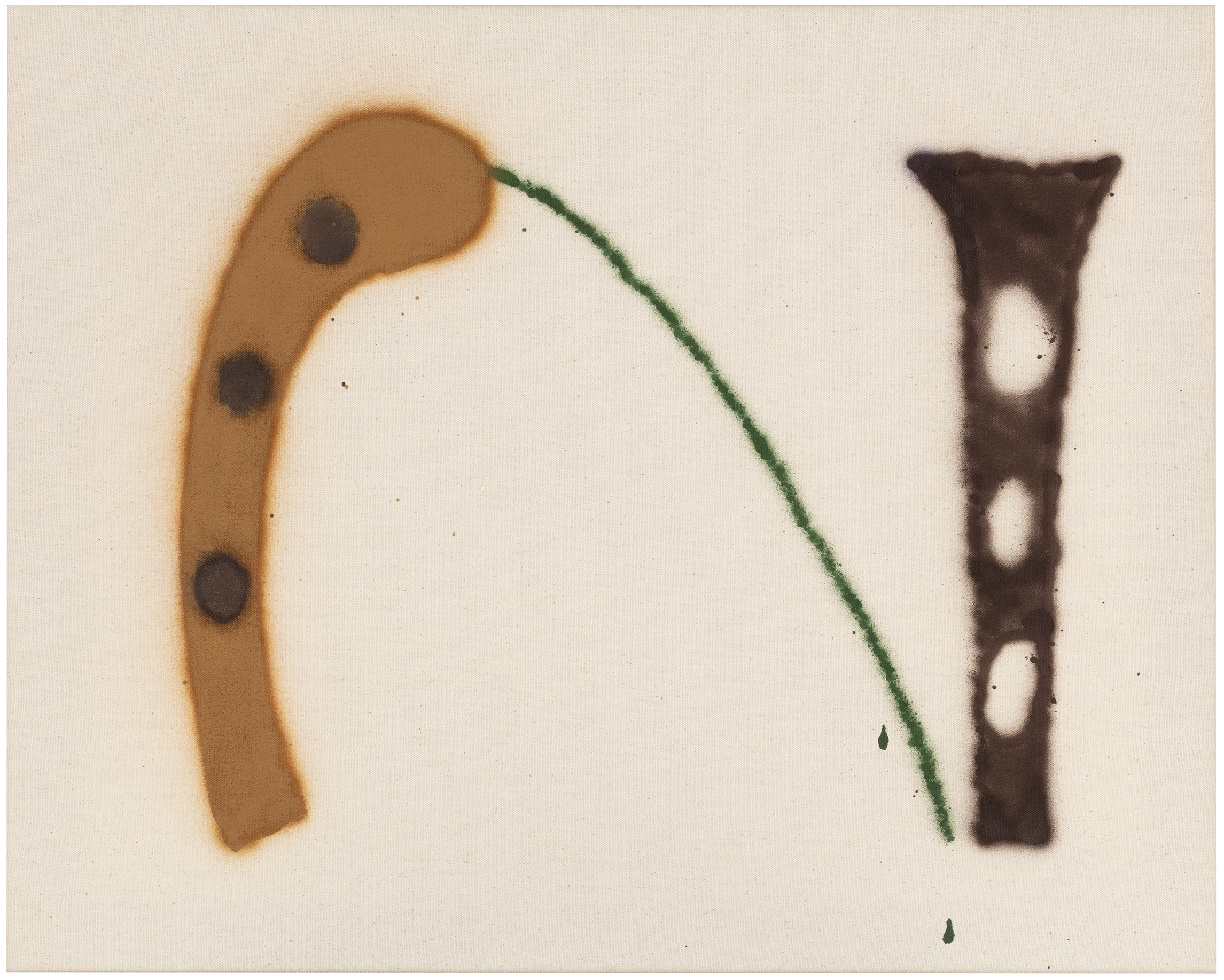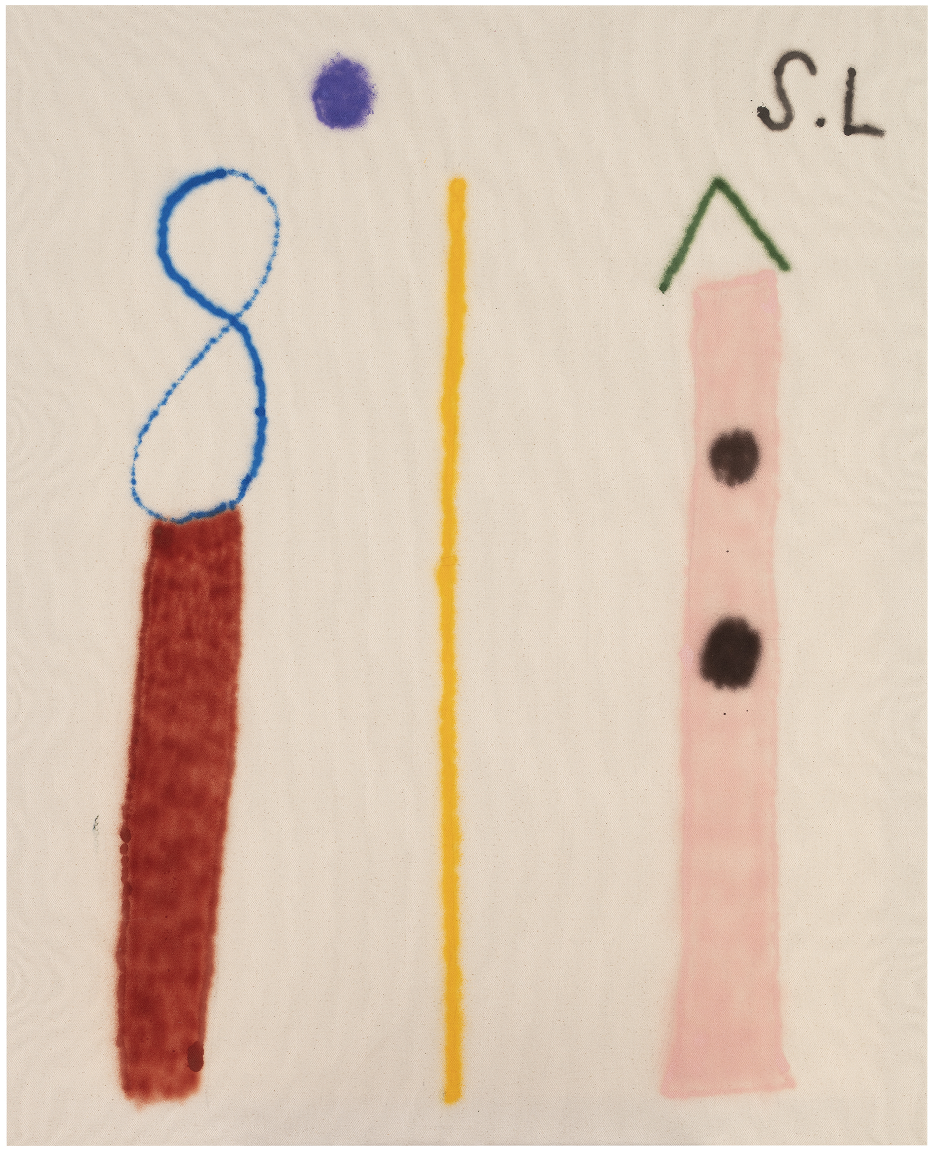 The paintings and sculptures in this group exhibition are woven together in a subtle, porous dialogue. They call out to each other, inciting collisions, their quirky forms and surprising gestures clashing headlong with preconceived assumptions and expectations. Something momentous announces its arrival, while at the same moment something deeply personal slips from our grasp – displayed together, the featured paintings and sculptures freeze this back-and-forth traffic in a densified form. Some of the paintings are steeped in elegant silence (Lehto), while others revel in spontaneous fullness (Goman) – and who could possibly overlook the fact that sculptures are basically brutalist candy (Alvarez)?