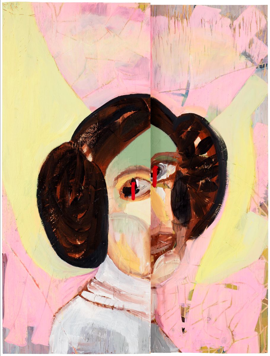 In her practice, CAMILLA VUORENMAA challenges the physical and traditional boundaries of painting. Her carved wood paintings are hybrids of sculpture and painting that require time and physical strength to create. The style is rough and unvarnished, endowed with a playful decorativeness, the palette rich and striking. Vuorenmaa depicts people and humanity in her work. She searches for motifs in magazines and books and by taking photographs of her surroundings. In her working process, it has become increasingly important to face fundamental questions by meeting and observing her subjects in authentic situations. In the most recent series of paintings the artist has explored Carrie Fisher’s eventful and tragic life which was entangled with the most famous fictional female action figure, princess Leia.