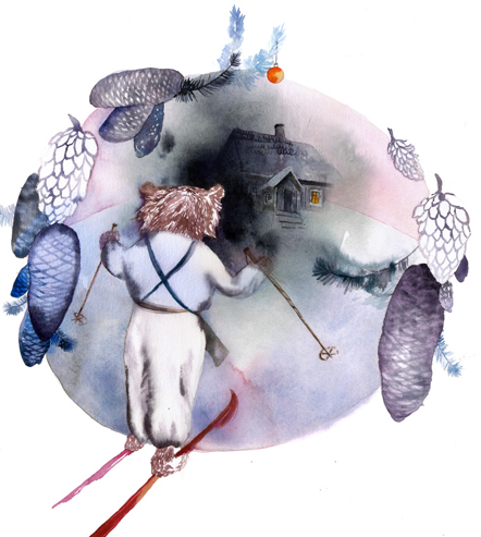 Kati Immonen, From the series Winter Fairy Tale: Jouluksi kotiin, 2012, watercolour on paper, 37 x 30 cm
