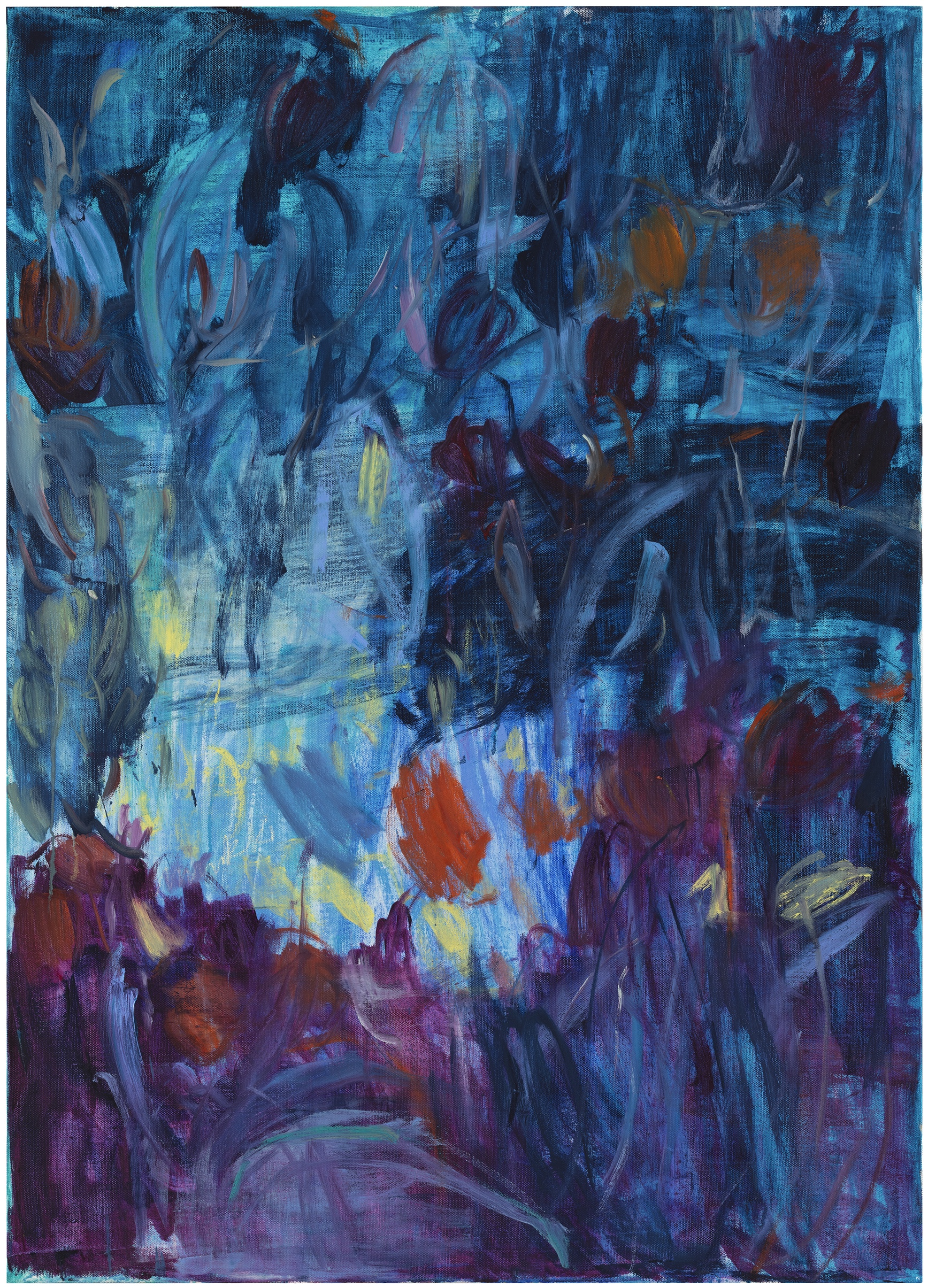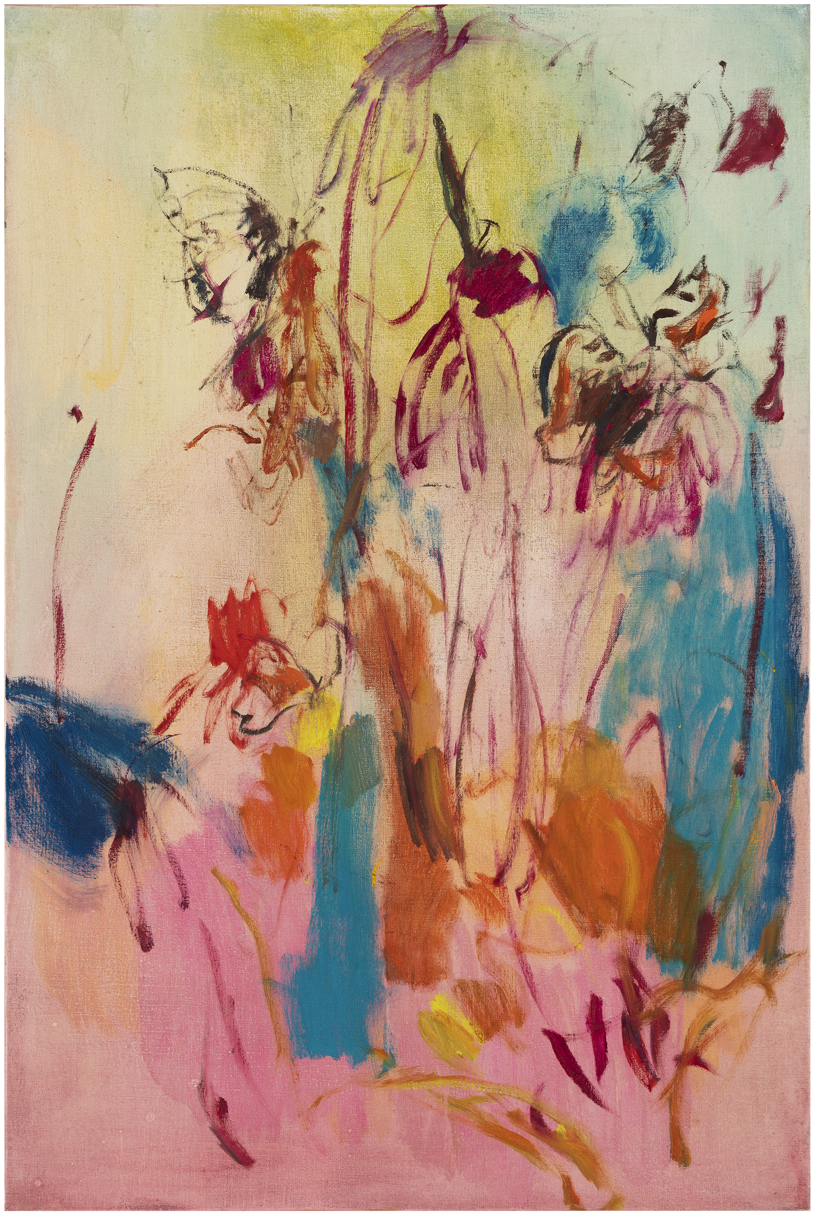 Retulainen’s paintings are layered like gardens. Last year’s fallen leaves protect the soil and feed new growth, with dinosaur kale and carrots mingling happily with myriad flowers. The various stages of the painting process – priming, overpainting, scraping, erasing – are analogous to planting, transplanting and weeding.