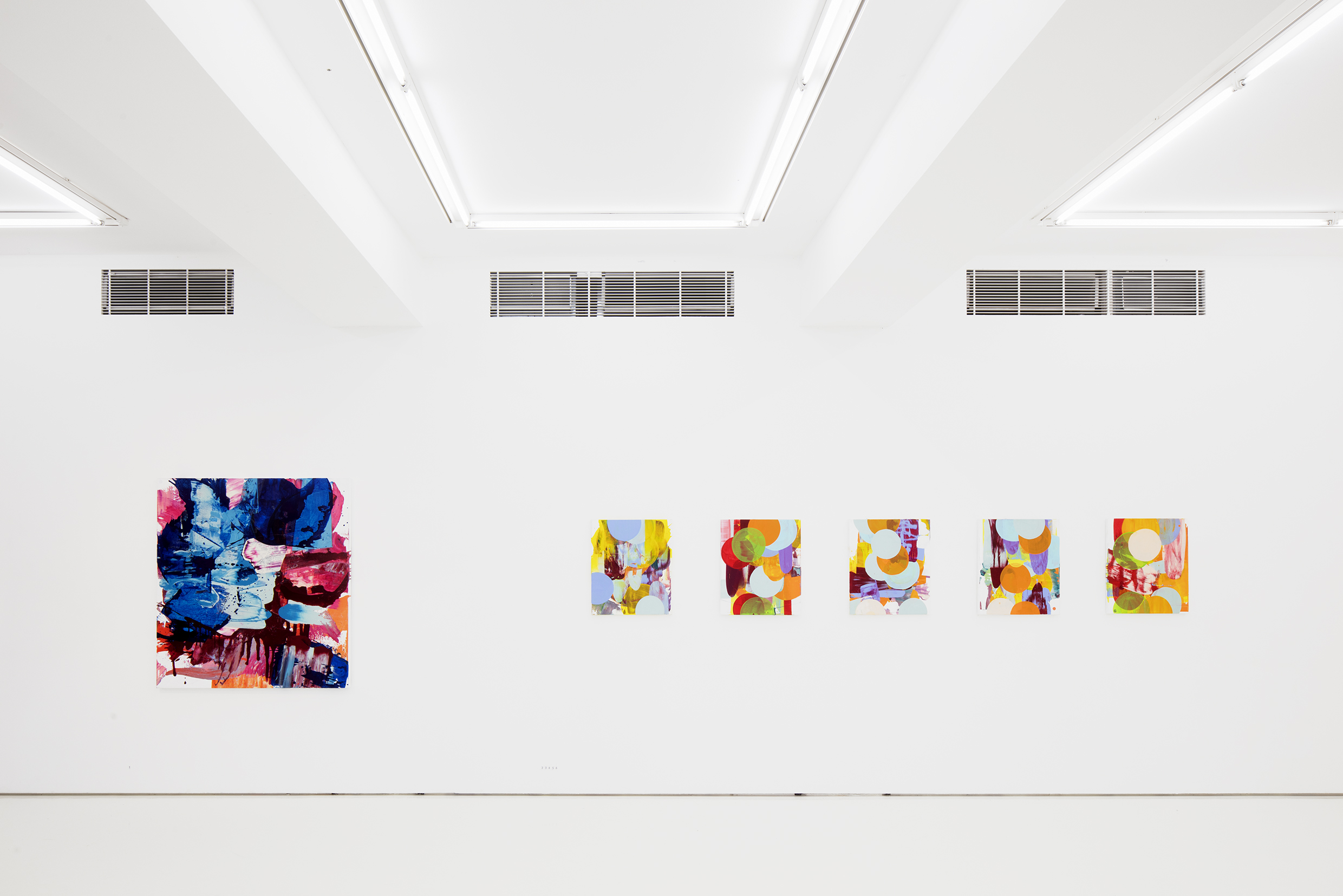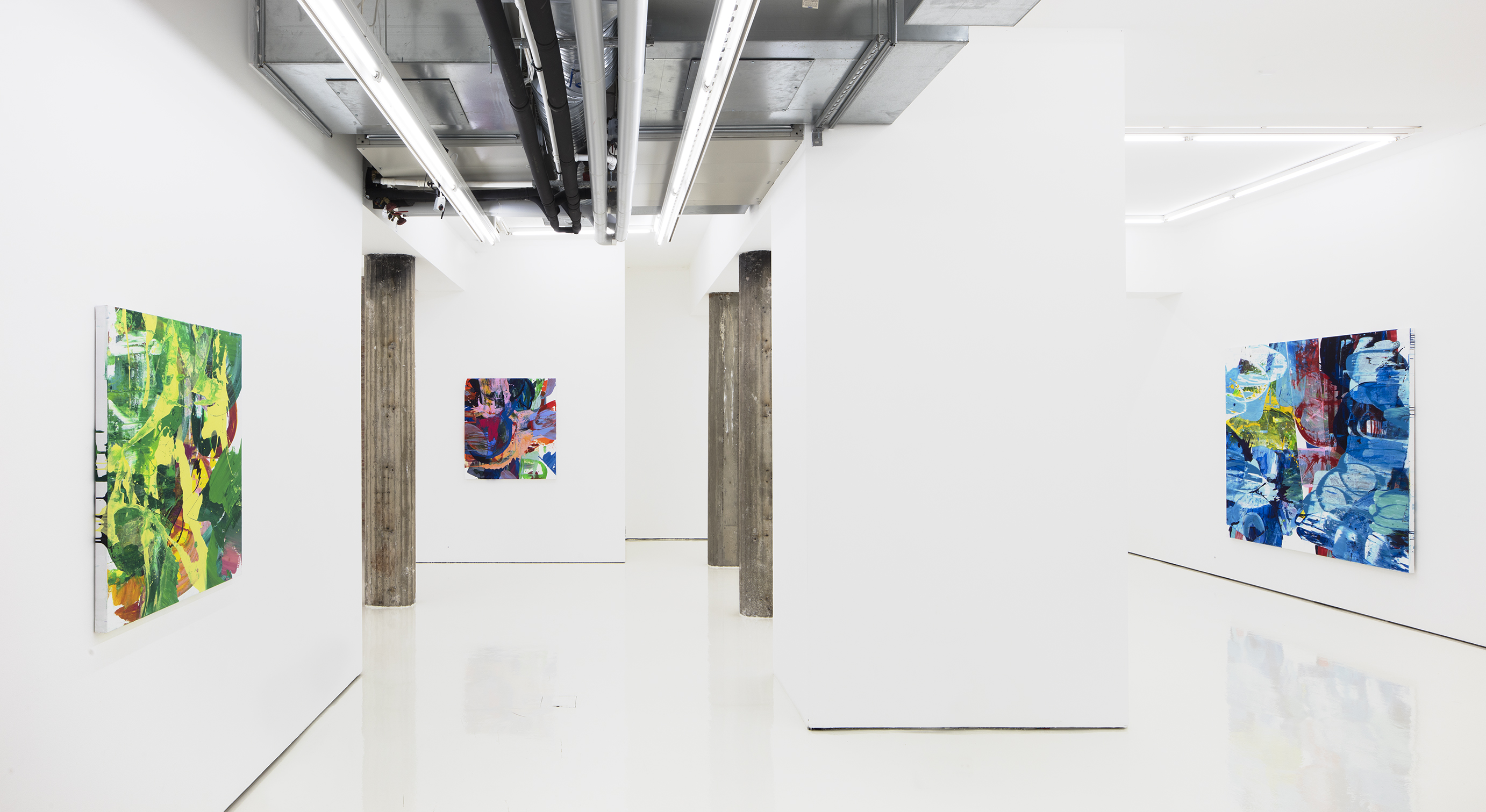 The name of the exhibition refers to catching a volatile feeling, which is how Sylwan experiences painting. To Sylwan, painting is about being in the present and constantly rejecting what you think you know. A painting by the same name, Dagen fick en annan ton, creates a backdrop to the exhibition. The work came to be in the beginning of this working process, it is confident and strong, and a prime example of Sylwan’s use of colours and paint