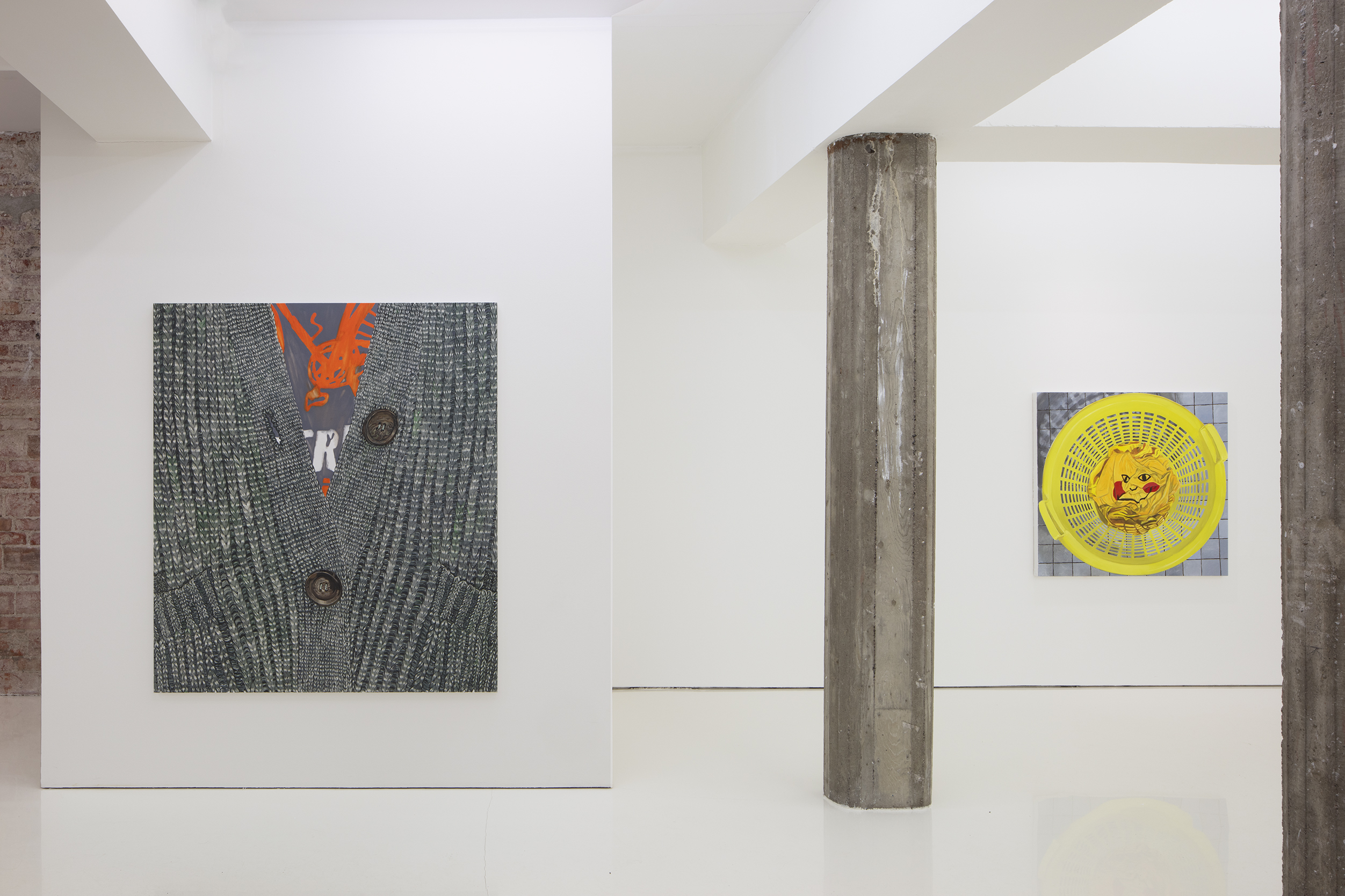 Nio’s complexly layered paintings straddle between abstraction and representation. Things hidden behind façades are central to her recent paintings, many of which literally contain peepholes evoking the duality of daily existence: behind the public façade is a private world that is revealed only to one’s closest loved ones. Fluffy jumpers and other items of clothing appear as recurring symbols of the softening buffers that we erect between ourselves and external reality.