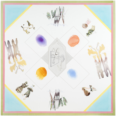 Meldere’s works are combinations of printing and painting. The UV-printing is often a link to the archival material she encounters while researching. The finished work is always a carefully balanced, delicate and refined painting.