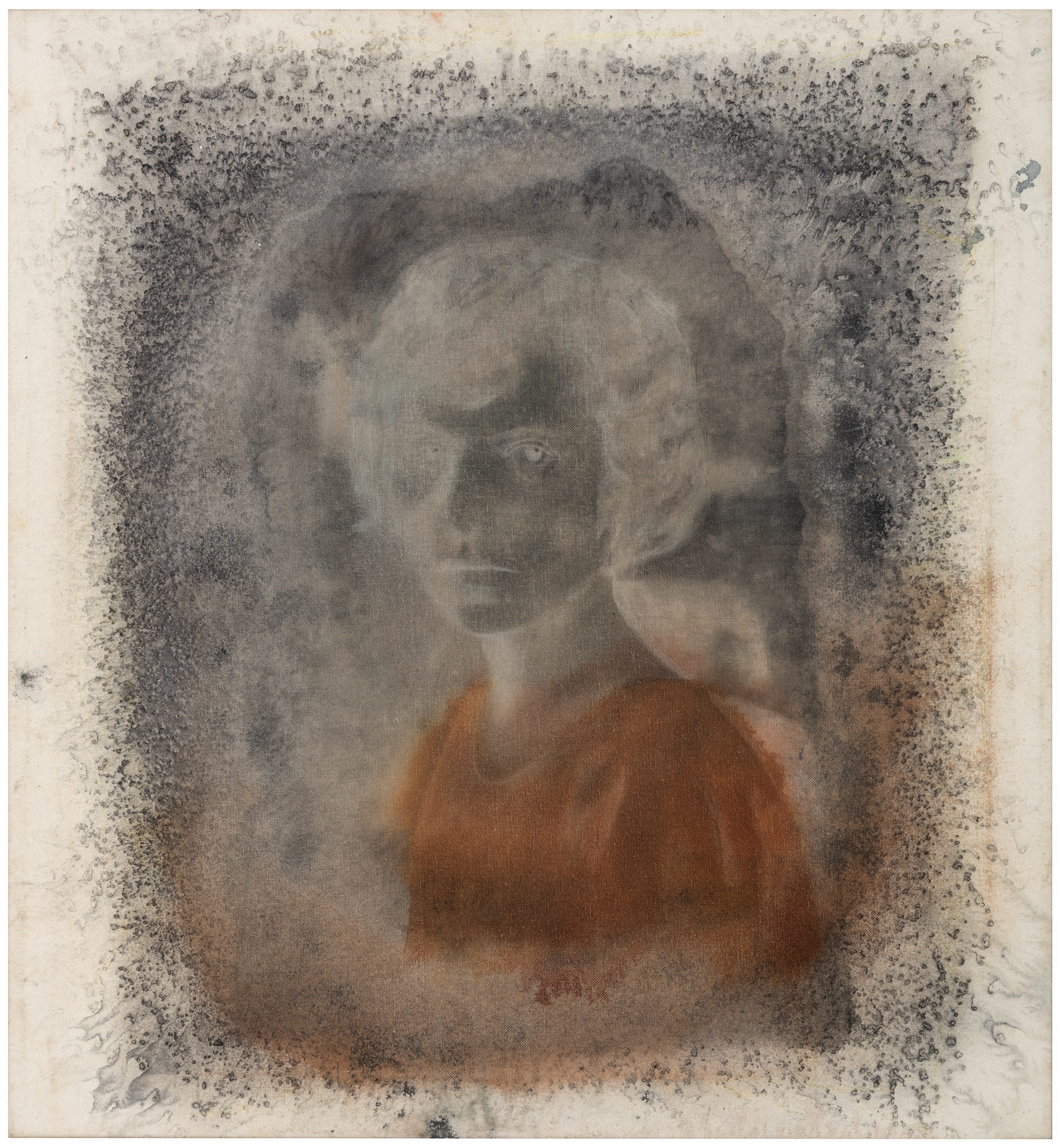 ink, charcoal, chalk, acrylic and pencil on canvas