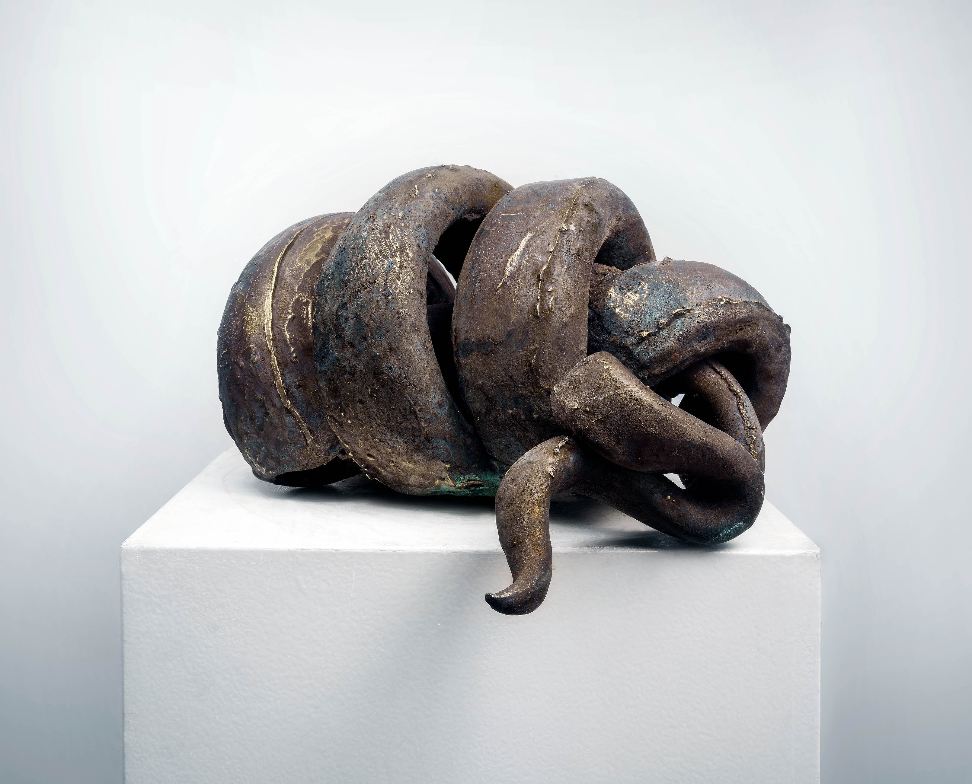 The bronze sculptures in the exhibition are based on pythons that Saksa also photographed in West Africa. These Vodun-religion fetishes are charged with energy and power, with a fuel capable of changing the course of life. Saksa juxtaposes these energies and views fossil energy as a religious force that regulates our way of being in the world.