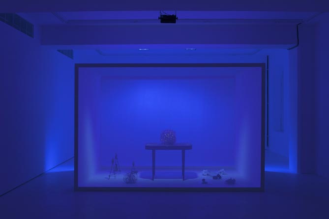 The key work in the exhibition, the light installation A Room for You, accentuates intuitive, subjective sensory experience. Laitinen has used various objects to assemble a stripped-down staging without a drama; a darkened stage, on which the lights direct the movement of the gaze. This is a subtle, intimate space, which simultaneously reveals and conceals its contents. The objects placed in the space are hints, conveyed a bit at a time, at the state of consciousness of some unknown person. The lights act like words at a first meeting: what is told is only a fragment. The story can be sensed, but it remains a riddle.