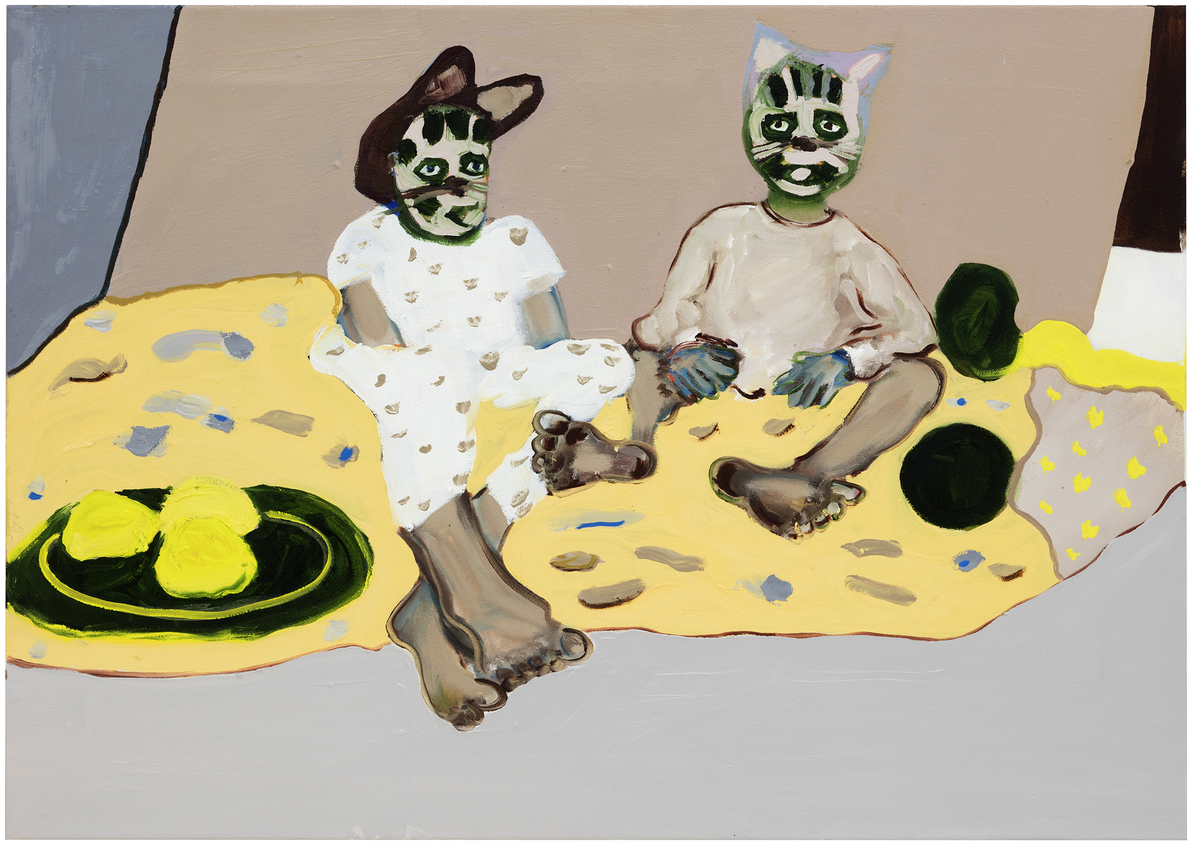 The set of works to be displayed in the gallery in May–June consists of recognisable, relatable moments that depict situations in family life. Of the background to the painting Tara and Momo Mäkilä says: “I thought for a long time about where to start off with a view to working on a solo exhibition. It felt pretentious to forcibly construct an exhibition around something that didn’t feel like it was my own or personally experienced. The urge to remain honest to myself was already strong right at the beginning of the working process.