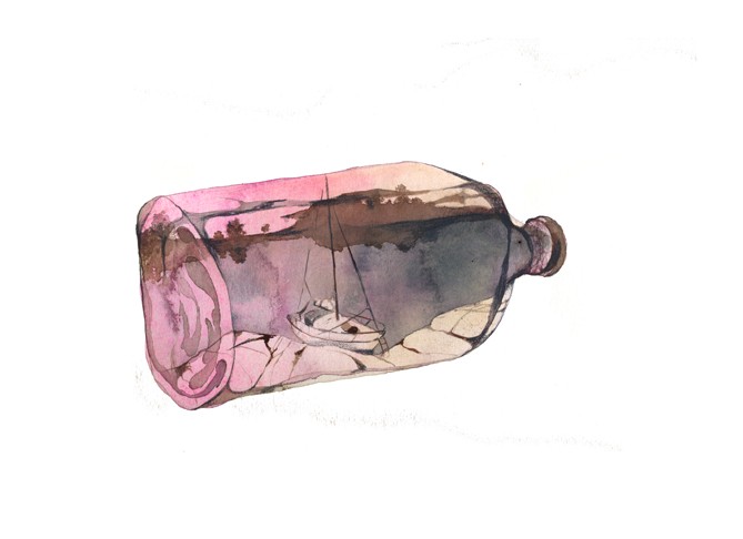 Kati Immonen: Pullotettu: Parhaat uimapaikat (Kårdiskan), 2015, watercolour on paper, 30 x 40 cm
